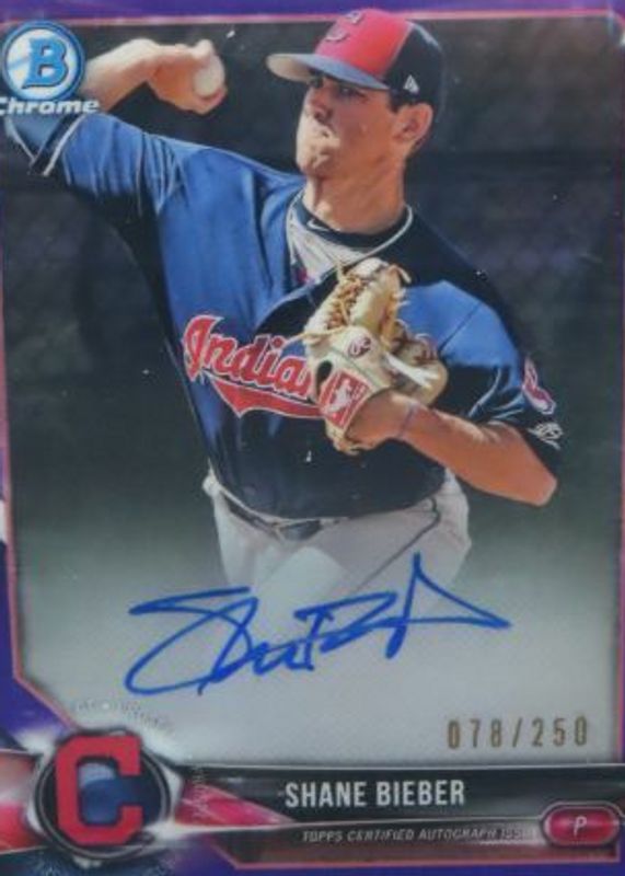 Best Prices Available For Sale of Shane Bieber 2018 Bowman Chrome #BCPA-SB Prospect Auto - Purple Refractor /250