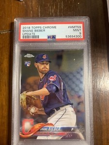 PSA 9 2018 Topps Chrome Update SHANE BIEBER Rookie Card RC #HMT59 Indians MINT