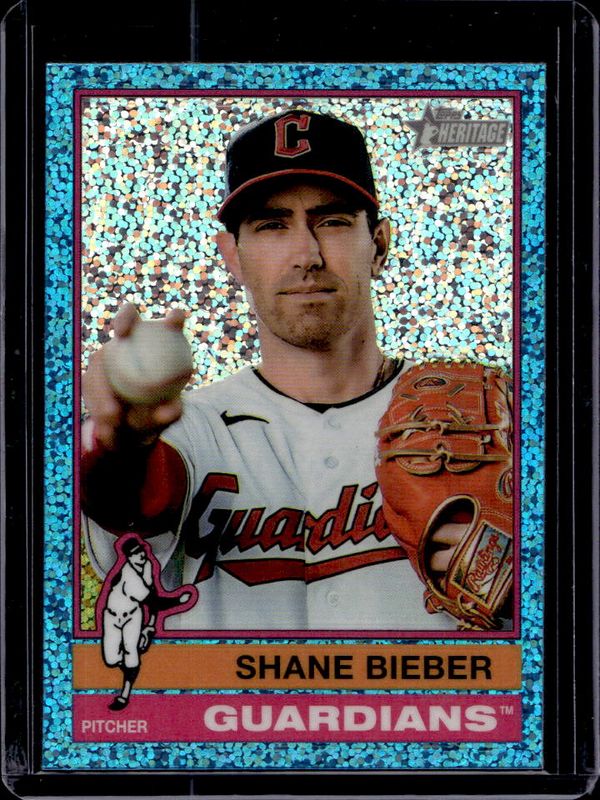Shane Bieber 2025 Topps Heritage #477 Chrome - Aqua Sparkle Refractor RAW Price Guide