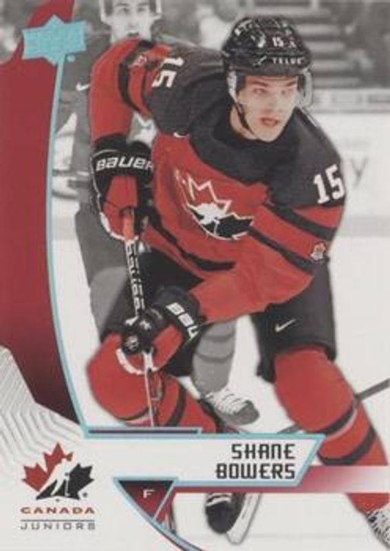 The Shane Bowers 2019 Upper Deck Team Canada Juniors #24 Blue card is 1 of 20 Shane Bowers' card variations in the 2019 Upper Deck Team Canada Juniors set being tracked by Sports Card Investor, including #24 Base, #113 Base, #24 Jersey Relics, #24 Premium Swatch Autographs /199, and #113 Exclusives /150.