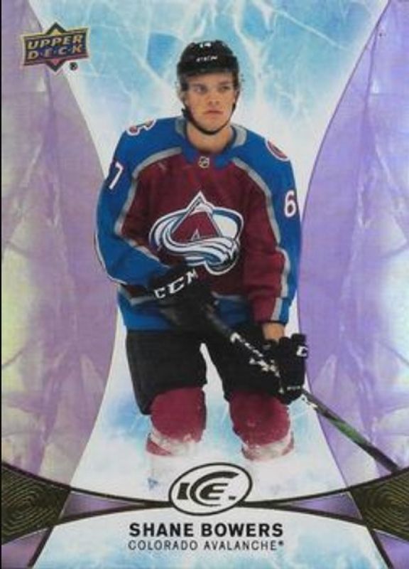 The Shane Bowers 2021 Upper Deck Ice #93 2020 - Lavender card is 1 of 9 Shane Bowers' card variations in the 2021 Upper Deck Ice set being tracked by Sports Card Investor, including #93 2020 - Green, #93 2020 - Ice Blue, #93 2020 - Orange, #93 2020 Upper Deck Ice /1299, and #171 2020 Upper Deck Ice /1299.