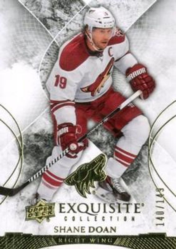 The Shane Doan 2015 Upper Deck Black Diamond #2 2015 Upper Deck Exquisite Collection /149 card is 1 of 7 Shane Doan's card variations in the 2015 Upper Deck Black Diamond set being tracked by Sports Card Investor, including Base /199, Pure Black /99, Jerseys /85, Pure Black Prime Relics /35, and Diamond /5.