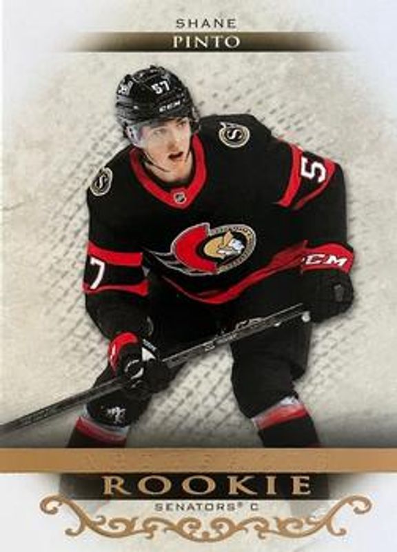 The Shane Pinto 2021 Upper Deck Artifacts #176 Rose Gold Rookie card is 1 of 21 Shane Pinto's card variations in the 2021 Upper Deck Artifacts set being tracked by Sports Card Investor, including Base /999, Neon Green, Turquoise, Ruby /499, and Silver Spectrum /299.