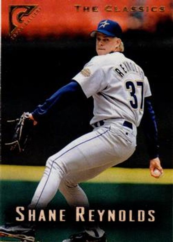 The Shane Reynolds 1996 Topps Gallery #66 Base card is 1 of 2 Shane Reynolds' card variations in the 1996 Topps Gallery set being tracked by Sports Card Investor, including Player's Private Issue /999.