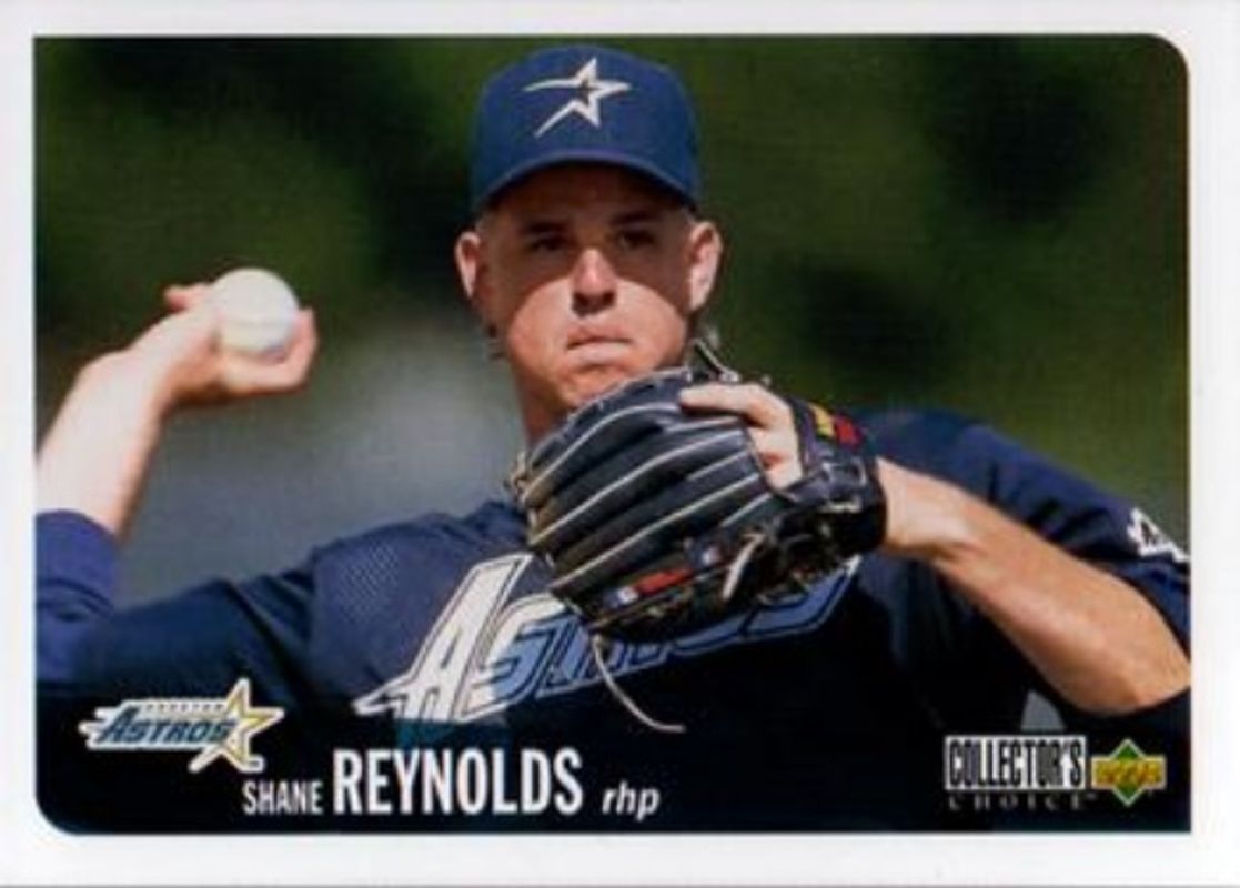 The Shane Reynolds 1996 Upper Deck Collector's Choice #164 Base card is 1 of 3 Shane Reynolds' card variations in the 1996 Upper Deck Collector's Choice set being tracked by Sports Card Investor, including Gold Signatures, and Silver Signatures.