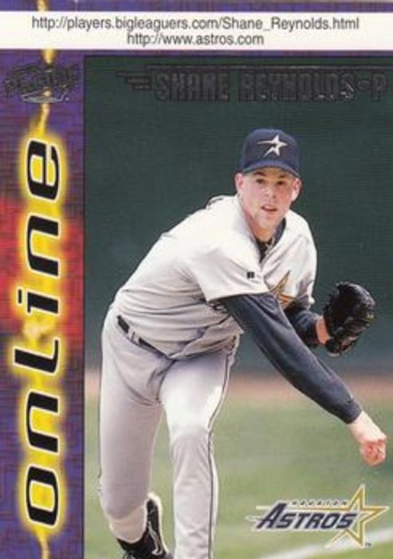 The Shane Reynolds 1998 Pacific Online #331 Base card is 1 of 4 Shane Reynolds' card variations in the 1998 Pacific Online set being tracked by Sports Card Investor, including Base Winners, Red, and Web Cards.