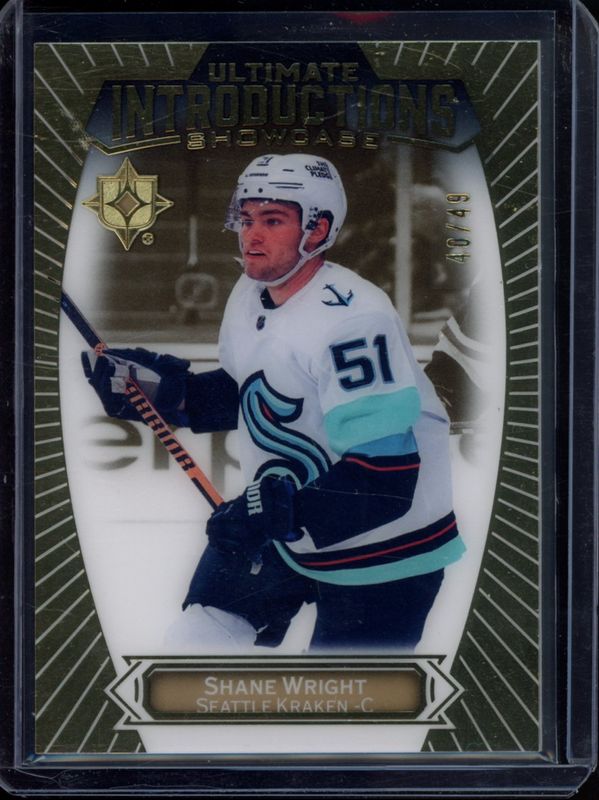 The Shane Wright 2022 Upper Deck Ultimate Collection #UI-94 Ultimate Introductions - Gold /49 Rookie card is 1 of 31 Shane Wright's card variations in the 2022 Upper Deck Ultimate Collection set being tracked by Sports Card Investor, including Base /299, Ultimate Rookies Jersey /799, Ultimate Rookies Patch Auto /99, Jumbo Patch Auto /3, and Shield Patch Auto /1.
