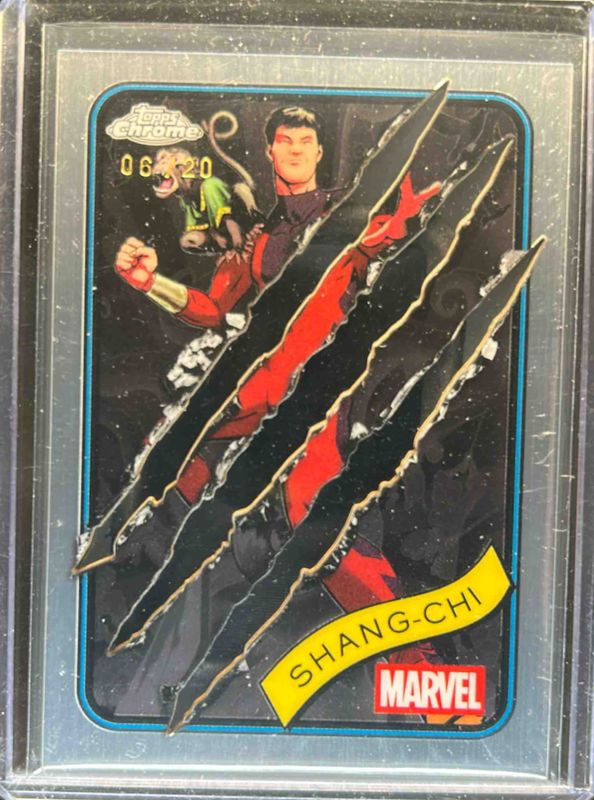 The Shang-Chi 2025 Topps Chrome #159 Clawed Chrome Refractor /20 card is 1 of 29 Shang-Chi's card variations in the 2025 Topps Chrome set being tracked by Sports Card Investor, including Base, Refractor, Yellow Lava Refractor, Spider Web Refractor /399, and Blue Refractor /299.
