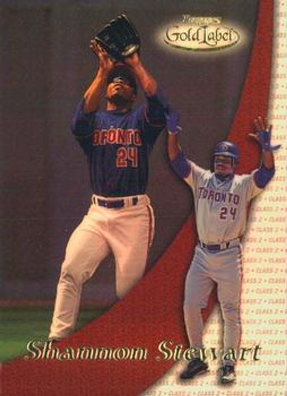 The Shannon Stewart 2000 Topps Gold Label #77 Class 2 card is 1 of 6 Shannon Stewart's card variations in the 2000 Topps Gold Label set being tracked by Sports Card Investor, including Base, Class 3, Class 1 Gold /100, Class 2 Gold /100, and Class 3 Gold /100.
