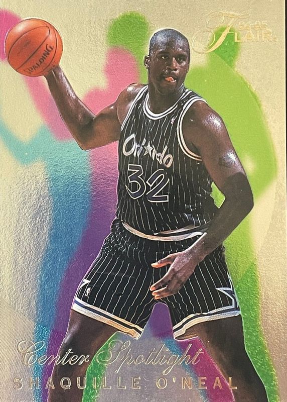 The Shaquille O'Neal 1994 Flair #5 Center Spotlight card in Raw condition has moved down -$4.50 (-48.4%) in the last 30 days and was last sold for $4.79 .