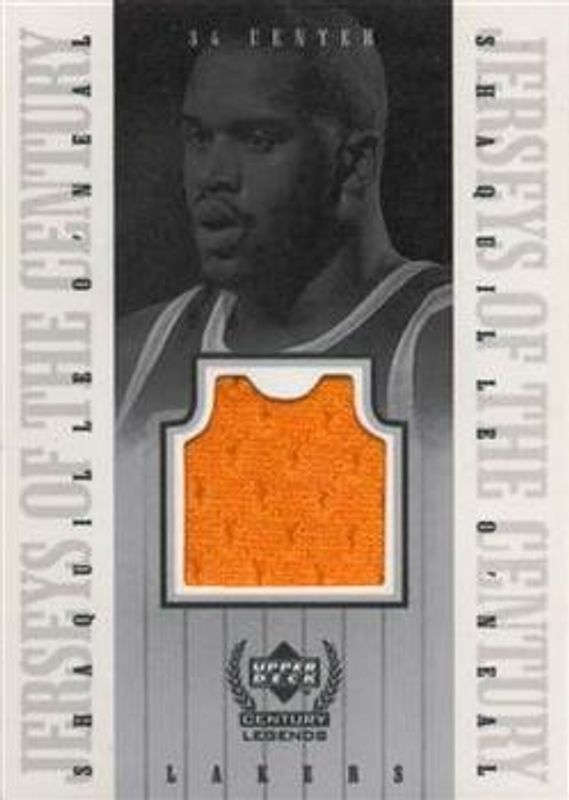 The Shaquille O'Neal 1998 Upper Deck Century Legends #SO Jerseys of the Century /6 card is 1 of 5 Shaquille O'Neal's card variations in the 1998 Upper Deck Century Legends set being tracked by Sports Card Investor, including #48 Base, #66 Base, #48 Century Collection /100, and #66 Century Collection /100.