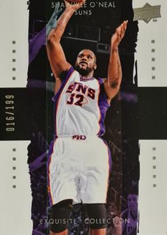 The Shaquille O'Neal 2009 Upper Deck Exquisite Collection #12 Base /199 card is 1 of 7 Shaquille O'Neal's card variations in the 2009 Upper Deck Exquisite Collection set being tracked by Sports Card Investor, including Black /1, Extra Exquisite Jerseys /50, Extra Exquisite Jerseys Gold /25, Jerseys /25, and Extra Exquisite Patches /15.