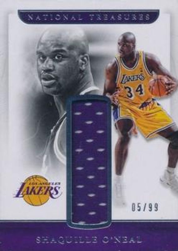 The Shaquille O'Neal 2016 National Treasures #RM-SO1 Retro - Materials /99 card is 1 of 65 Shaquille O'Neal's card variations in the 2016 National Treasures set being tracked by Sports Card Investor, including Logoman Autographs Printing Plates Black /1, Logoman Autographs Printing Plates Cyan /1, Logoman Autographs Printing Plates Magenta /1, Logoman Autographs Printing Plates Yellow /1, and Retro - Materials /99.