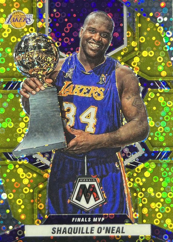 The Shaquille O'Neal 2021 Mosaic #297 Finals MVPs - Fast Break Gold /10 card in Raw condition has not changed in price in the last 30 days and was last sold for $137.40 .