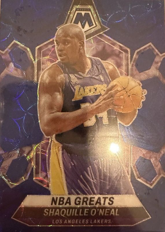 The Shaquille O'Neal 2023 Mosaic #296 NBA Greats - International Blue /25 card in Raw condition has moved up $1.50 (+7.9%) in the last 30 days and was last sold for $20.50 .