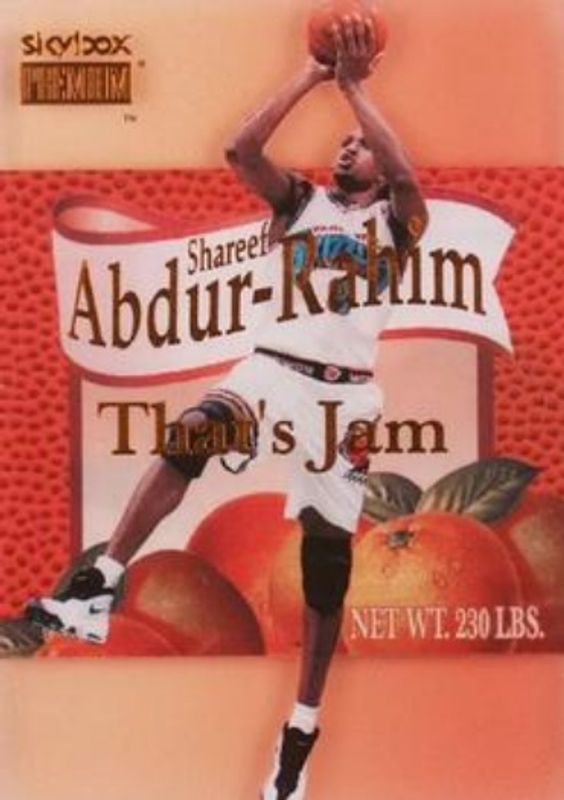 The Shareef Abdur-Rahim 1998 Skybox Premium #3-TJ That's Jam card is 1 of 16 Shareef Abdur-Rahim's card variations in the 1998 Skybox Premium set being tracked by Sports Card Investor, including #201 Base, #97 Base, #201 Ninety Fine - Star Rubies /50, #97 Star Rubies /50, and #201 Star Rubies /50.