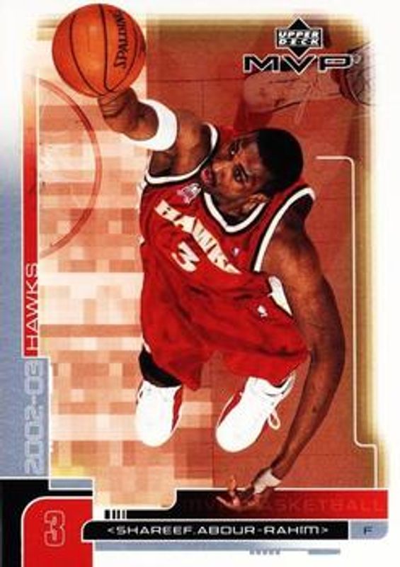 The Shareef Abdur-Rahim 2002 Upper Deck MVP #1 Base card is 1 of 5 Shareef Abdur-Rahim's card variations in the 2002 Upper Deck MVP set being tracked by Sports Card Investor, including Classic, Gold /100, Classic Black /50, and Materials Warm Up.