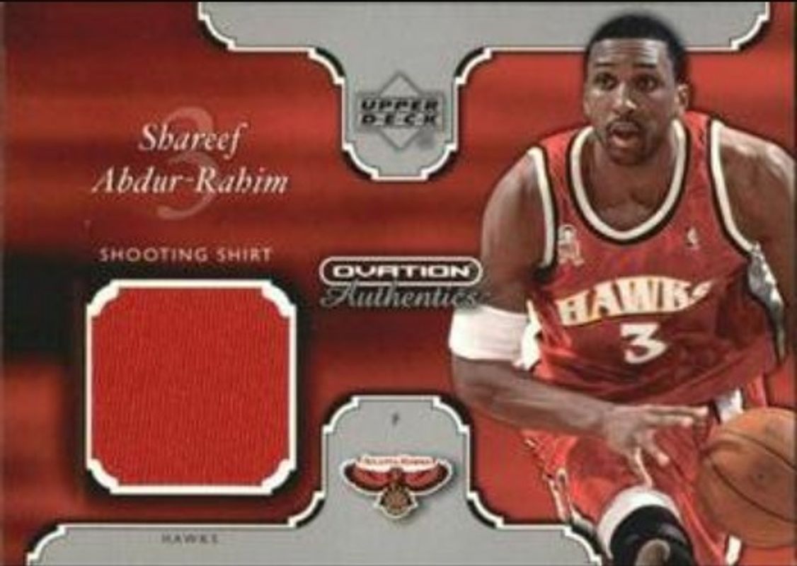 The Shareef Abdur-Rahim 2002 Upper Deck Ovation #SA-S Authentics Shooting Shirt card is 1 of 3 Shareef Abdur-Rahim's card variations in the 2002 Upper Deck Ovation set being tracked by Sports Card Investor, including Base /2999, and Authentics Shooting Shirt Gold /15.
