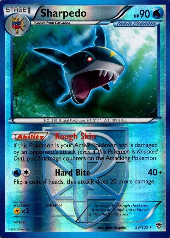 Sharpedo (Team Plasma) 33/135 Reverse Holo Plasma Storm - Pokemon Card - NM