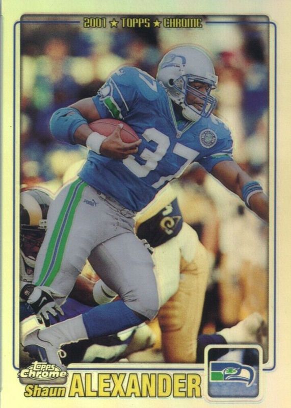This card is 1 of 2 Shaun Alexander's card variations in the 2001 Topps Chrome set being tracked by Sports Card Investor, including Base.