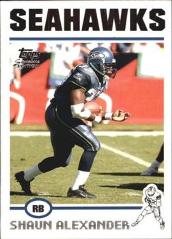 The Shaun Alexander 2004 Topps Signature #4 Base /499 card is 1 of 3 Shaun Alexander's card variations in the 2004 Topps Signature set being tracked by Sports Card Investor, including Blue /50, and Gold /1.