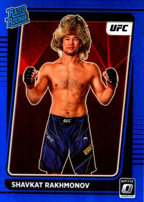 2022 UFC Donruss Optic Shavkat Rakhmonov RC #115 Rated Rookie Blue Prizm #70/99