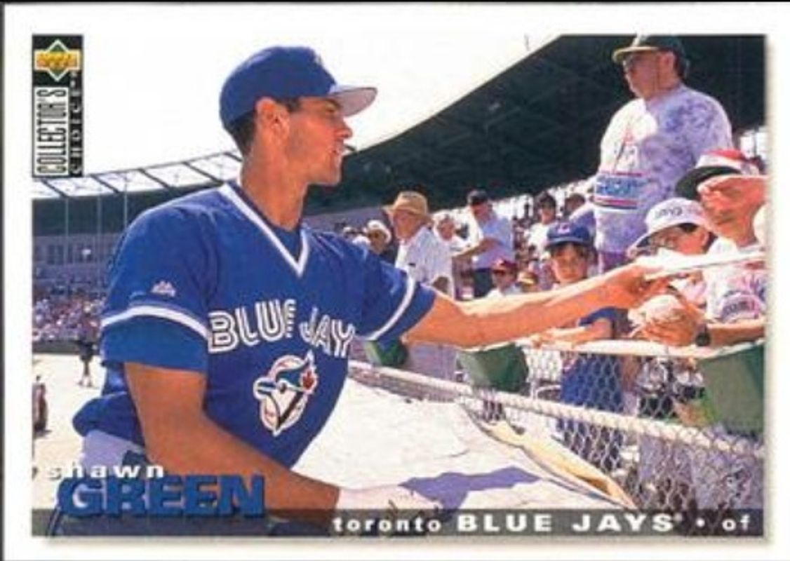 The Shawn Green 1995 Upper Deck Collector's Choice #144 Base card is 1 of 3 Shawn Green's card variations in the 1995 Upper Deck Collector's Choice set being tracked by Sports Card Investor, including Gold Signatures, and Silver Signatures.