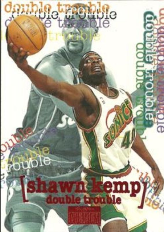 The Shawn Kemp 1996 Skybox Premium #269 Star Rubies card is 1 of 9 Shawn Kemp's card variations in the 1996 Skybox Premium set being tracked by Sports Card Investor, including #109 Base, #269 Base, #109 Star Rubies, #6 Golden Touch, and #B8 Larger Than Life.
