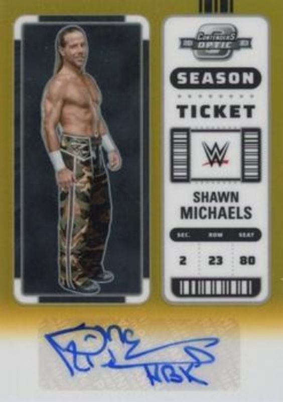 Shawn Michaels 2023 Chronicles WWE #CO-SHM Contenders Optic Season Ticket Signatures - Gold /10 RAW Price Guide