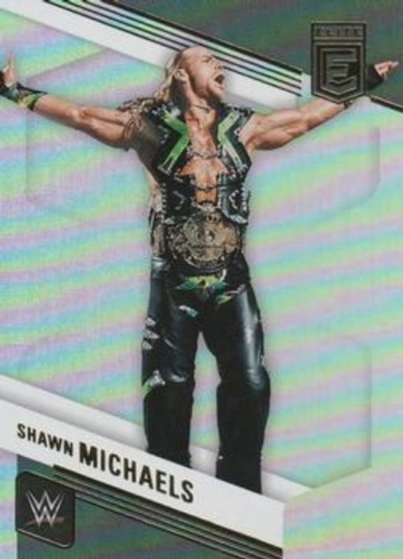 The Shawn Michaels 2023 Elite WWE #141 Base card is 1 of 33 Shawn Michaels' card variations in the 2023 Elite WWE set being tracked by Sports Card Investor, including Green, Pink, Razzle Dazzle, Red, and Status Explosion /275.
