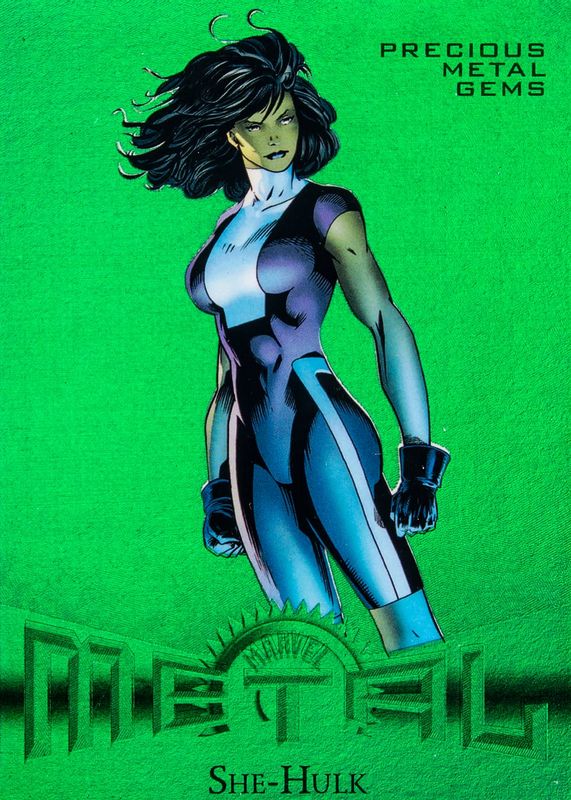 This card is 1 of 3 She-Hulk's card variations in the 2013 Fleer Retro set being tracked by Sports Card Investor, including Precious Metal Gems Red /100, and Precious Metal Gems Blue /50.