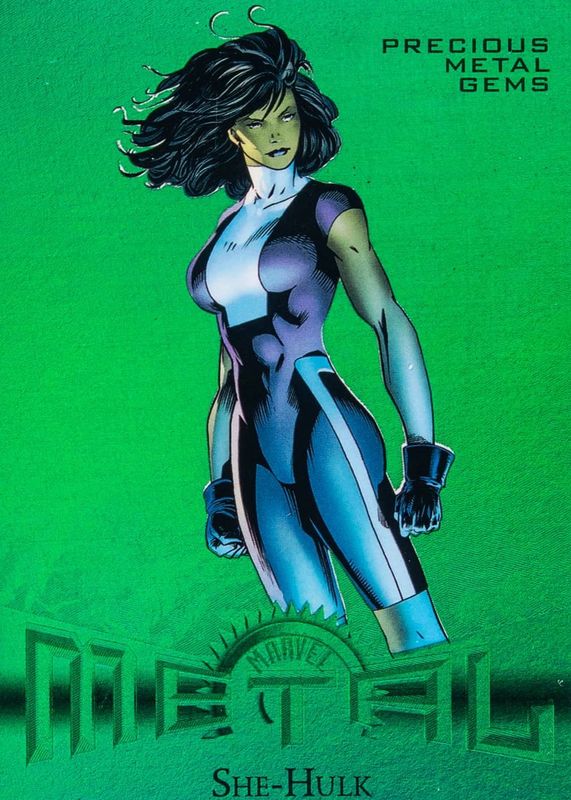 This card is 1 of 4 She-Hulk's card variations in the 2015 Fleer Retro set being tracked by Sports Card Investor, including Metal Blaster, Precious Metal Gems Red /100, and Precious Metal Gems Blue /50.