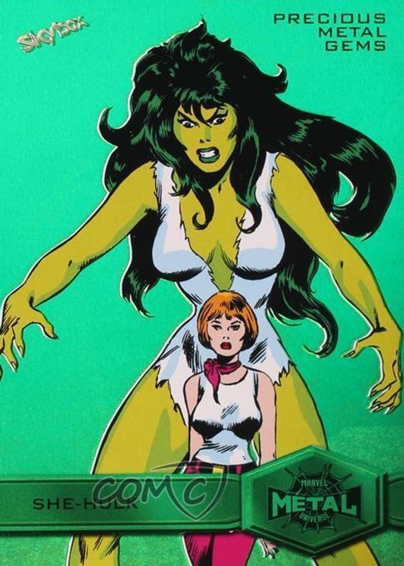 Recent Sales of She-Hulk 2021 Skybox Marvel Metal Universe Spider-Man #177 Precious Metal Gems Green (High Series) /10 Raw