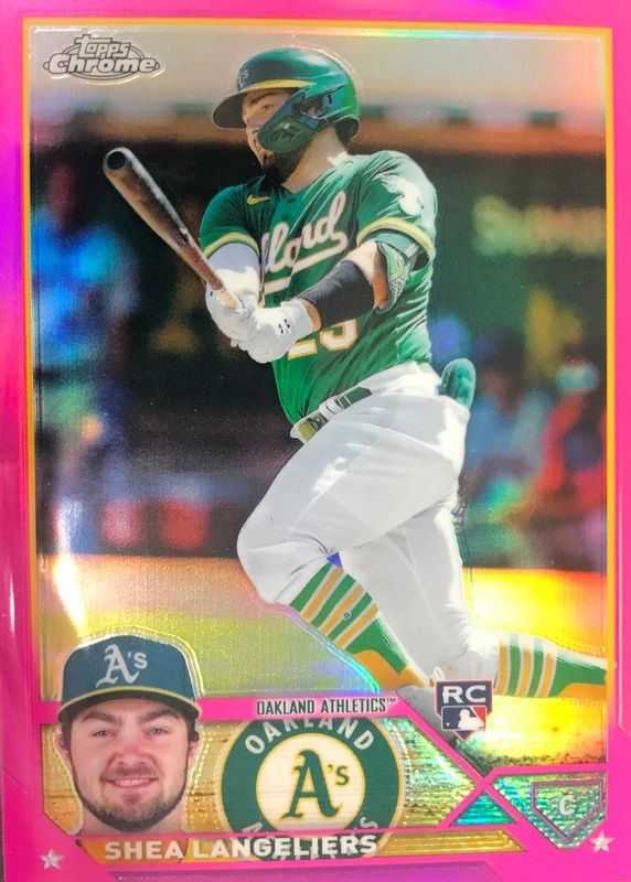 SHEA LANGELIERS 2023 TOPPS CHROME PINK REFRACTOR RC OAKLAND ATHLETICS #175
