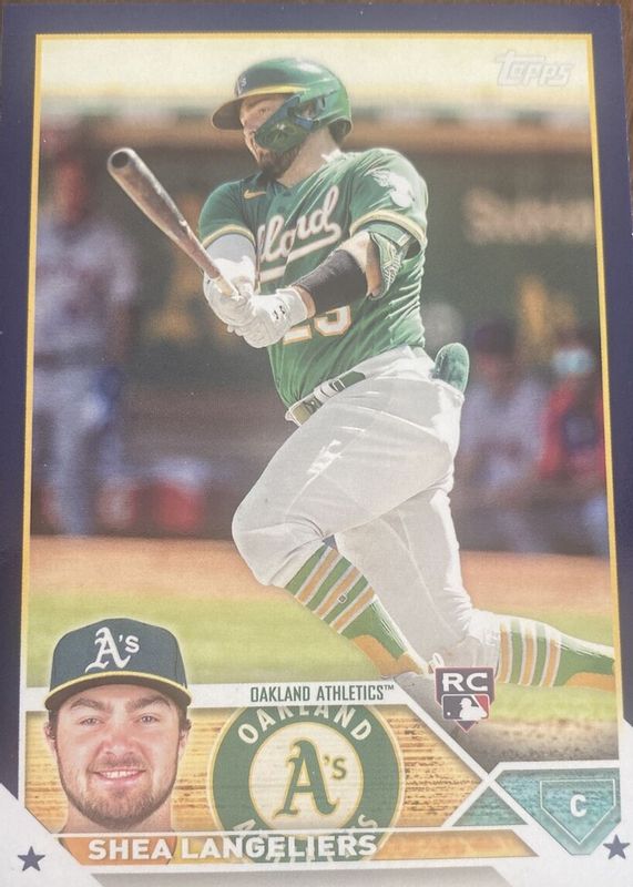This card is 1 of 18 Shea Langeliers' card variations in the 2023 Topps set being tracked by Sports Card Investor, including Base, Gold Foil, Rainbow Foil, Gold /2023, and Green Foil /499.