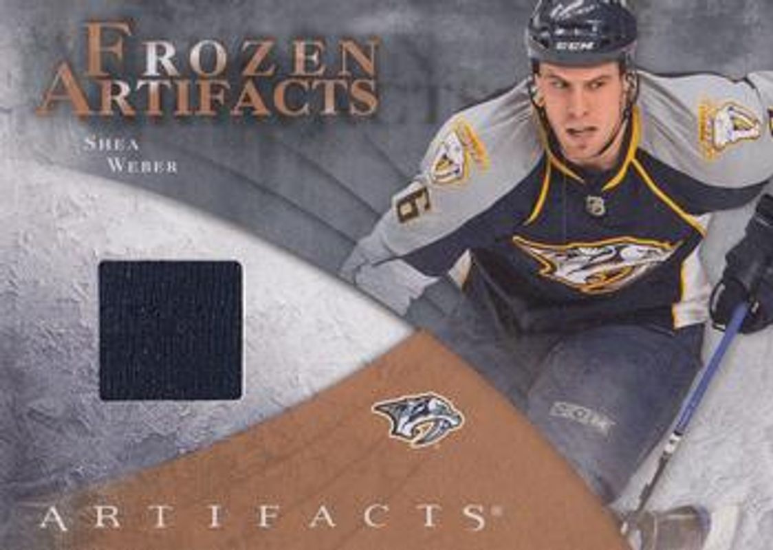 The Shea Weber 2010 Upper Deck Artifacts #FAR-SW Frozen Artifacts Retail card is 1 of 32 Shea Weber's card variations in the 2010 Upper Deck Artifacts set being tracked by Sports Card Investor, including Base /699, Emerald /50, Gold /35, Silver /25, and Rainbow /10.