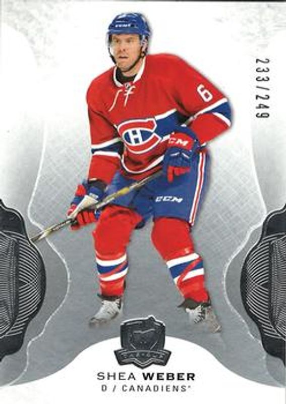 The Shea Weber 2016 Upper Deck The Cup #53 Base /249 card is 1 of 12 Shea Weber's card variations in the 2016 Upper Deck The Cup set being tracked by Sports Card Investor, including Gold Patch /24, Gold Spectrum /12, Red Tag /8, Green Button /3, and Black Foil /1.