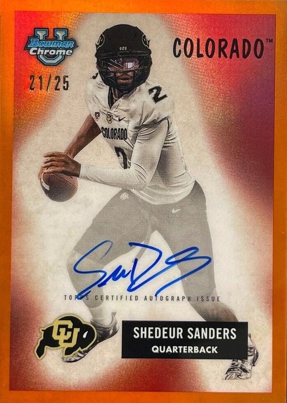 Shedeur Sanders 2023 Bowman Chrome University #55B-SSA 1955 Bowman Football Autographs - Orange Refractor /25 RAW Price Guide