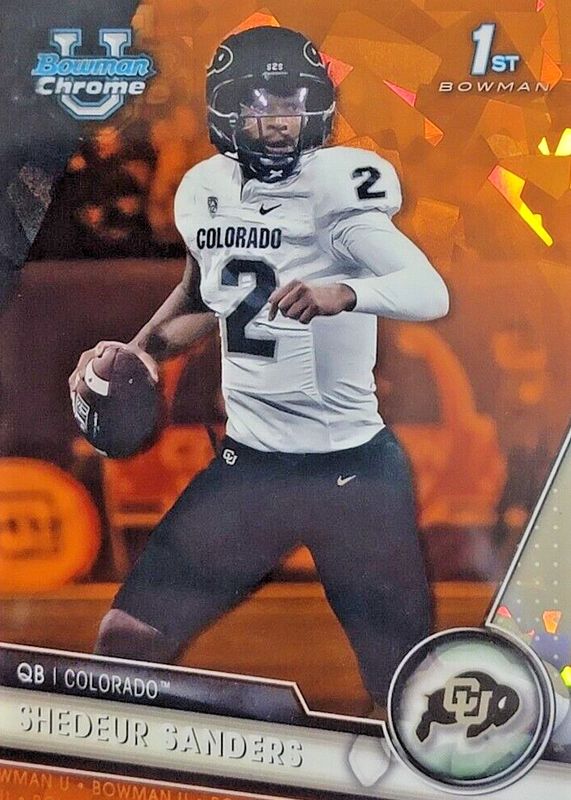 Shedeur Sanders Orange Sapphire /25 2023 Bowman Chrome U University Colorado