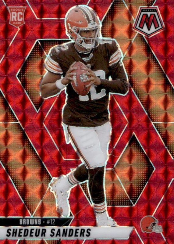 2025 Panini Mosaic 302 Shedeur Sanders QB Red Mosaic and Base Rookie QB Browns