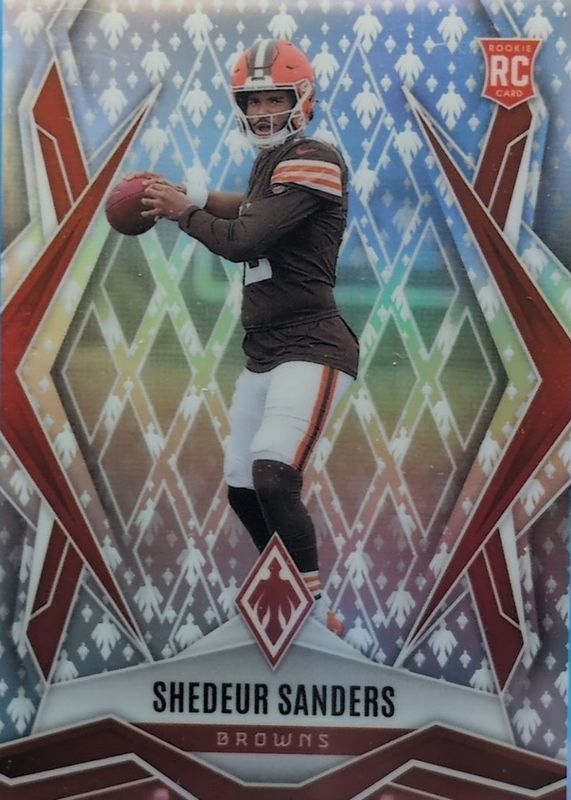 The Shedeur Sanders 2025 Phoenix #154 Phoenix /149 Rookie card in Raw condition has not changed in price in the last 30 days and was last sold for $48.59 .