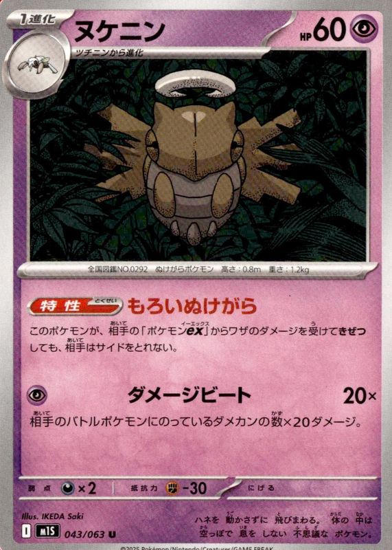 Shedinja 043/063 Japanese Pokémon Card M1S 2025 Mega Symphonia NM
