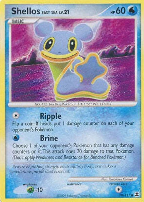 The Shellos East Sea 2009 Platinum: Rising Rivals #079/111 Base card in Raw TCG (Lightly Played) condition has not changed in price in the last 30 days and was last sold for $1.34 .