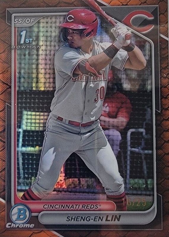 2024 Bowman Chrome Sheng-En Lin 1st Orange Reptilian Refractor 14/25 Reds