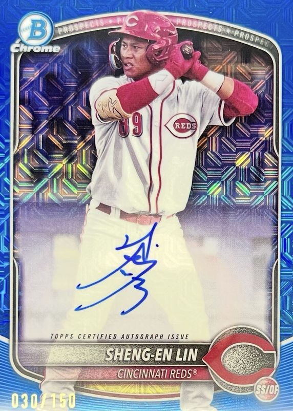 Sheng-En Lin Reds Bowman 2025 Blue Mojo Auto Numbered to 150