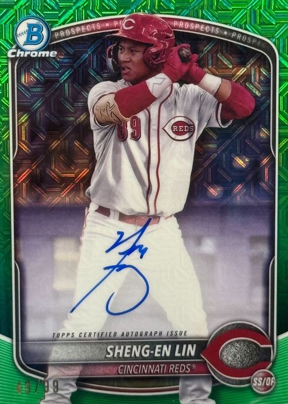 2025 Bowman Chrome Sheng En Lin Auto /99 Green Mega Box Mojo Cincinnati Reds