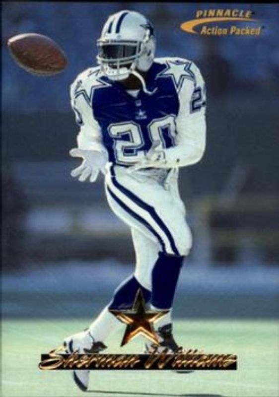 Other popular players in the 1996 Action Packed Flagship set include Emmitt Smith, Jerry Rice, Michael Irvin, Barry Sanders, and Brett Favre.