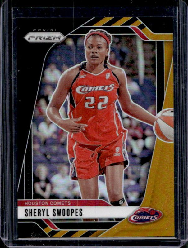 The Sheryl Swoopes 2024 Prizm WNBA #74 Black Gold /5 card is 1 of 54 Sheryl Swoopes' card variations in the 2024 Prizm WNBA set being tracked by Sports Card Investor, including Base, Blue Velocity, Checkerboard, Green, and Ice.