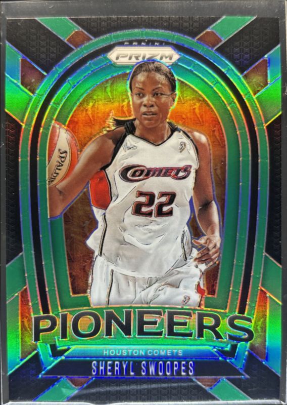 The Sheryl Swoopes 2024 Prizm WNBA #4 Pioneers - Green card is 1 of 54 Sheryl Swoopes' card variations in the 2024 Prizm WNBA set being tracked by Sports Card Investor, including Base, Blue Velocity, Checkerboard, Green, and Ice.