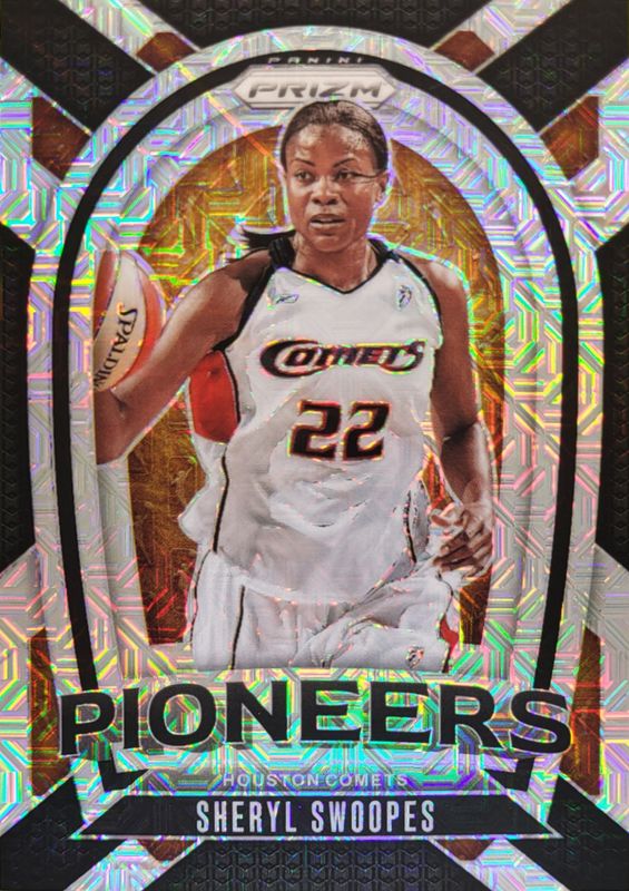 The Sheryl Swoopes 2024 Prizm WNBA #4 Pioneers - Mojo /25 card is 1 of 54 Sheryl Swoopes' card variations in the 2024 Prizm WNBA set being tracked by Sports Card Investor, including Base, Blue Velocity, Checkerboard, Green, and Ice.